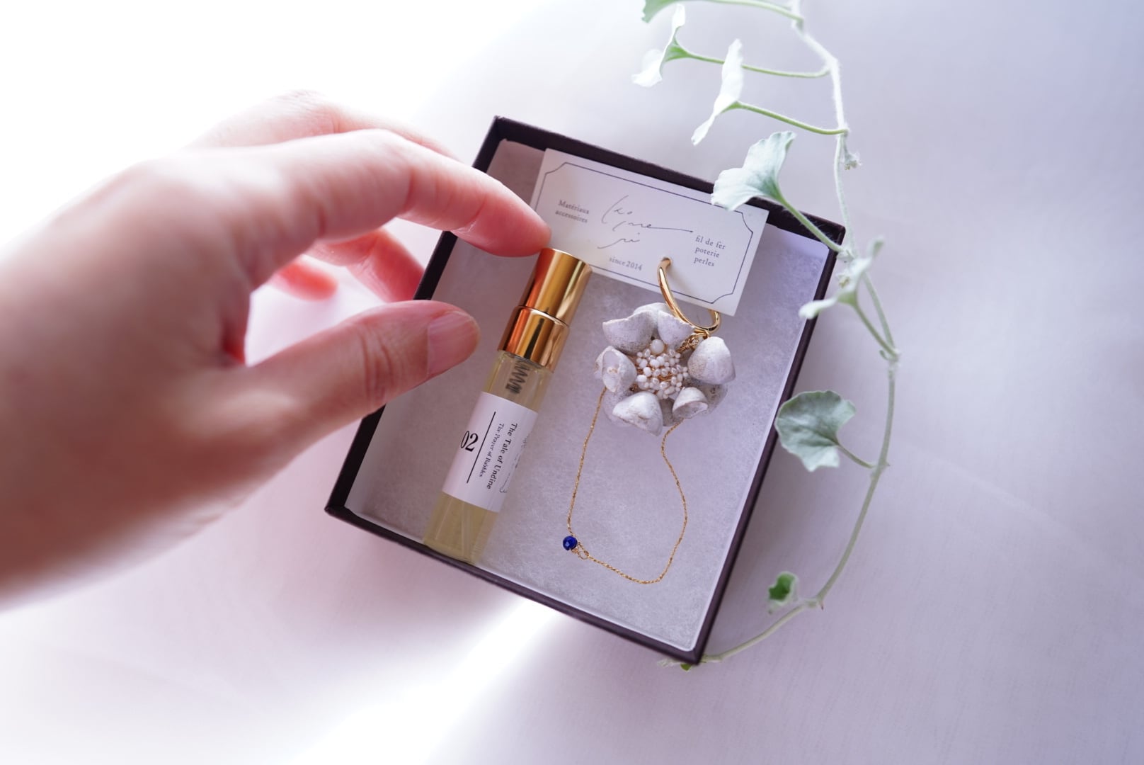 ヤマゼリのイヤーカフと水のアロマフレグランス